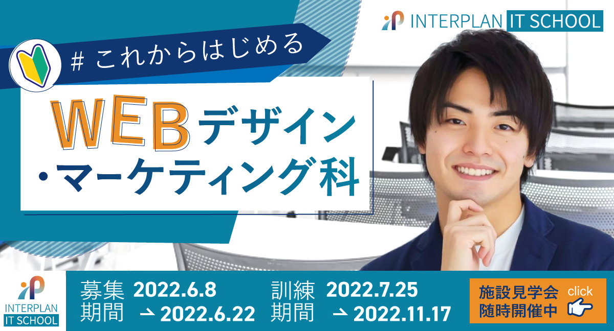 その後、SEから離れて転職、結婚出産など紆余曲折を得て、 夢を諦めきれず職業訓練校(インタープランITスクール)にて Webデザインを改めて学び、Webデザイナーを目指す。