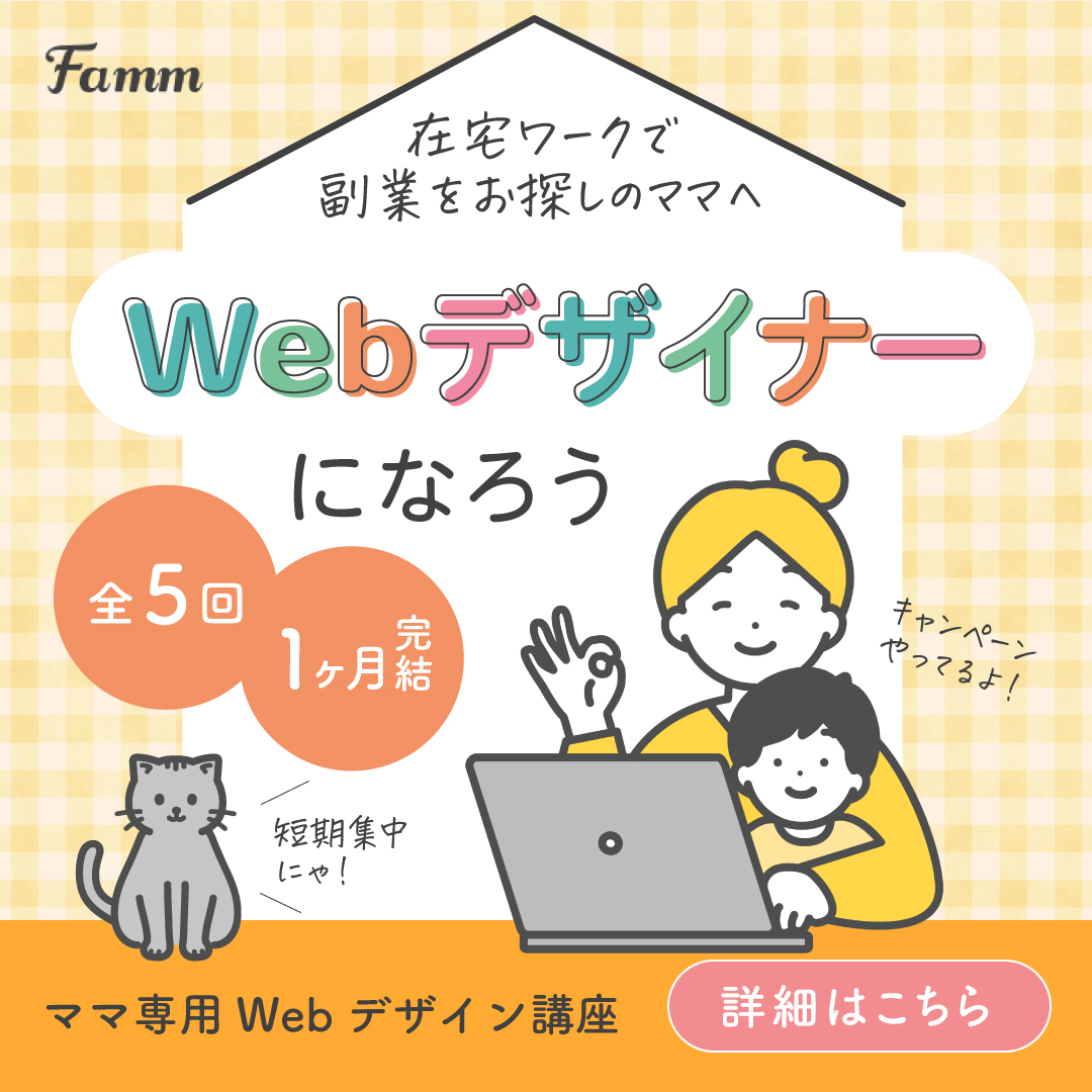 その後、SEから離れて転職、結婚出産など紆余曲折を得て、 夢を諦めきれず職業訓練校(インタープランITスクール)にて Webデザインを改めて学び、Webデザイナーを目指す。